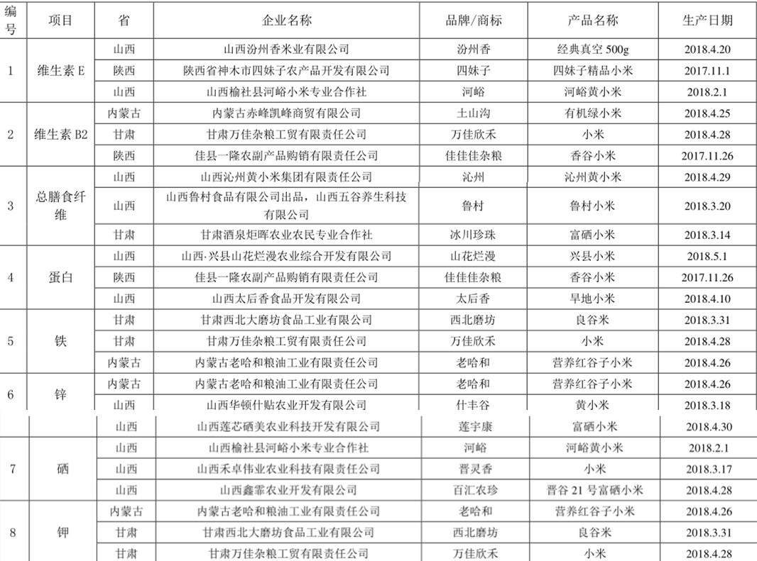 接下來這個榜單就是小米的營養(yǎng)鑒評結(jié)果
